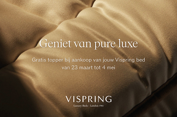 Van 23 maart t/m 4 mei 2026 ontvangt u een gratis topper bij aankoop van een nieuw Vispring bed.