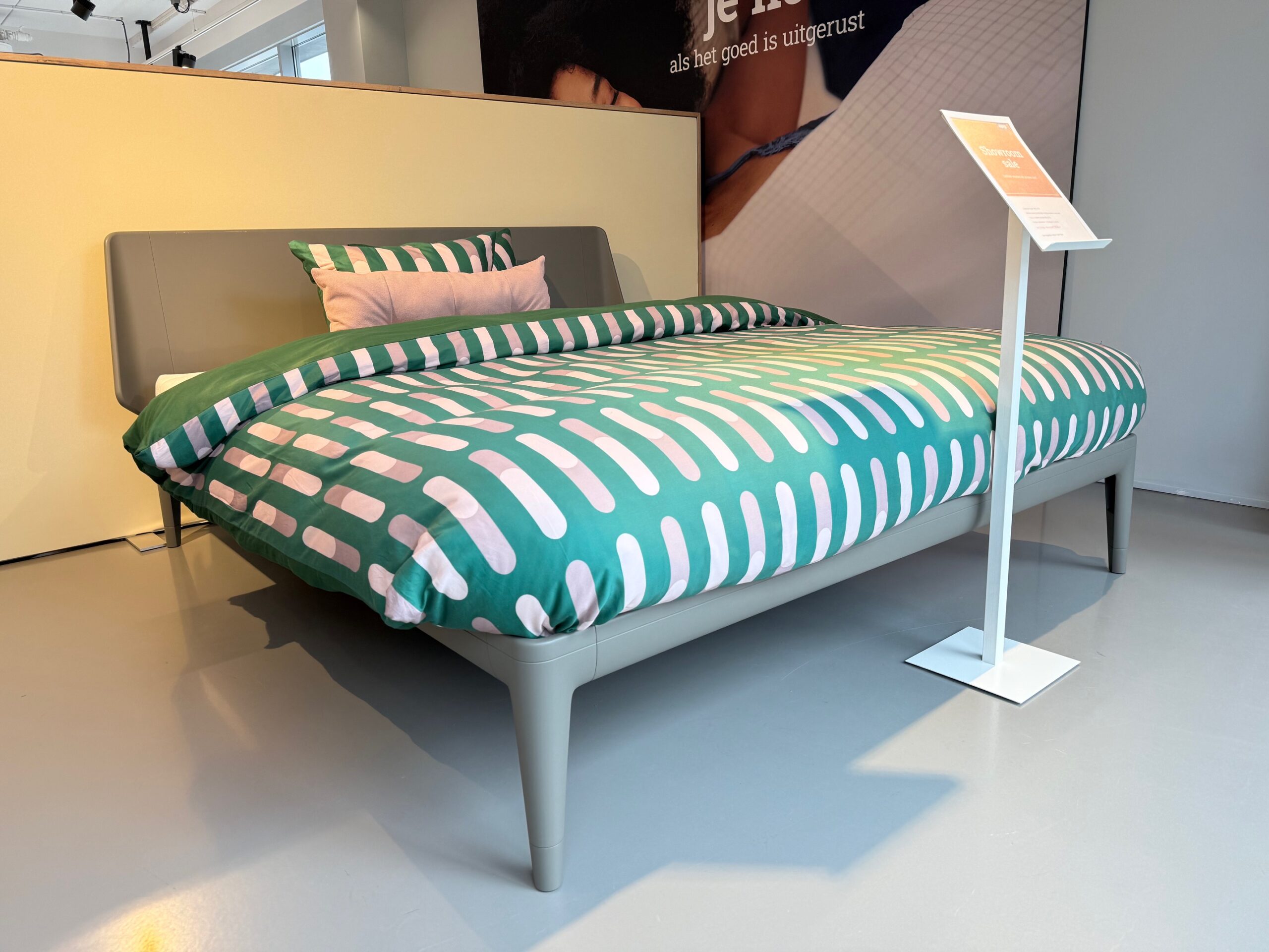 Onder het bed bevinden zich twee vlakke spiraalbodems (90×210 cm), gecombineerd met twee Inizio-matrassen (1x medium, 1x firm) voor een perfecte balans tussen ondersteuning en comfort.