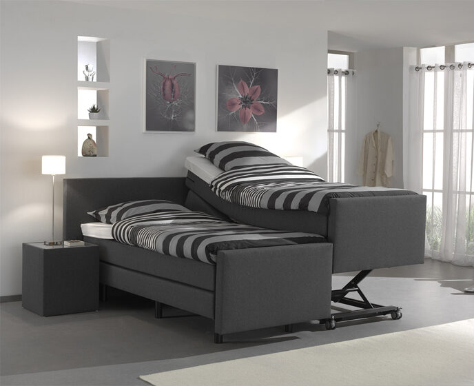 Veel van onze zorgbedden zijn deelbaar: het bed kan eenvoudig uit elkaar geschoven worden. Dit maakt het bed ideaal voor situaties waarin samen slapen gewenst is, maar individuele toegankelijkheid of verzorging belangrijk blijft. Praktisch voor nu, en voorbereid op de toekomst.